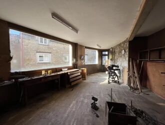 1. Une maison d'habitation rénovée avec maître d'œuvre construite en pierres sous couverture d'ardoises à l'avant et d'ardoises fibrociment à l'arrière, comprenant :- au rez-de-chaussée: pièce de vie avec cheminée, cuisine aménagée avec plaques vitrocéramiques, hotte, four, chambre et salle d'eau avec wc. En prolongement: un grande pièce à usage de débarras et buanderie avec cheminée, et au dessus grenier sur dalle béton.