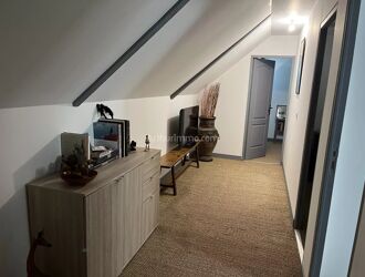 A l'étage : un palier avec rangements donnant sur 3 chambres dont une avec placards et une salle de bains/WC.