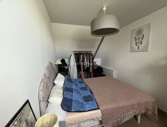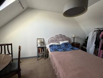 - Appartement au 1er étage accessible par le garage, comprenant : séjour/salon avec cheminée, wc, salle d'eau, cuisine, deux chambres et un bureau.