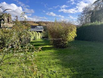2. Un bâtiment en pierres sous couverture d'ardoises à usage de garage avec au dessus grenier et cellier en prolongement. Cour et jardin en prolongement. Le tout sur 550 m2 + en face : terrain de 1055m2. Possibilité terrain d'environ 4500m2 aettanent en plus.