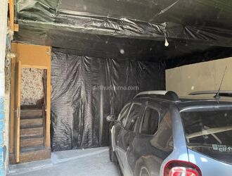 Un garage, un débarras chaufferie avec cheminée - le tout communiquant entre les deux logements.