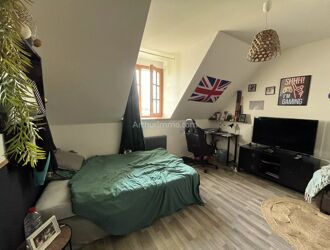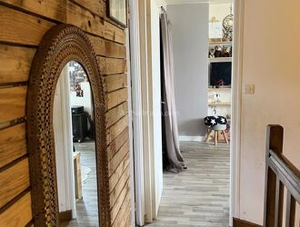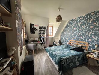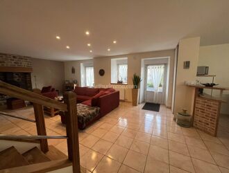 - Appartement au 1er étage accessible par le garage, comprenant : séjour/salon avec cheminée, wc, salle d'eau, cuisine, deux chambres et un bureau.