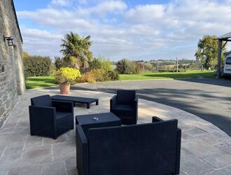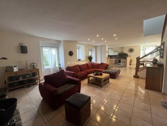 Au calme sans vis à vis Une longère en pierres rénovée dans le style authentique composée au rdc d'une cheminée en granite avec salon, salle à manger et cuisine ouverte avec poêle à bois, dépendance à usage de buanderie avec wc et pressoir. Au 1er : une grande pièce avec 2 côtés chambres, sde, grenier au dessus. Dépendance attenante à rénover (énorme potentiel) avec grenier au dessus. Un petit hangar en face. Le tout sur un terrain de 3675 m2 avec un verger.