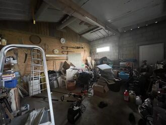 - Un grenier sur le tout. Un garage en parpaings, couvert en tôle de fibro.